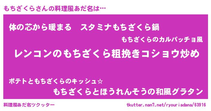 | 胡散臭い通販商品みたいなあだ名 | 『ガンによく効く高麗人参…その名も「もちざくら」』 |