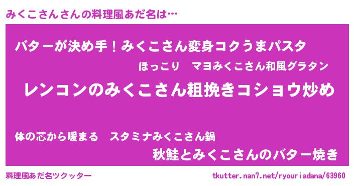| 胡散臭い通販商品みたいなあだ名 | 『テレビで話題の高麗人参…その名も「みくこさん」』 |
