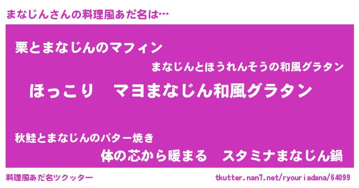 | 男性向けラノベタイトル風あだ名 | 『この素晴らしい世界にまなじんを!』 |