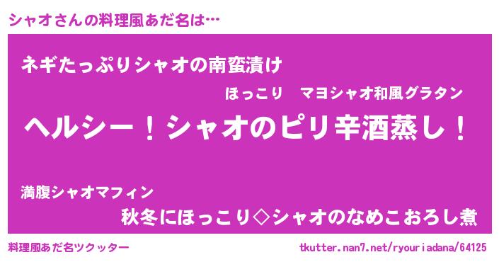 | ヘコむあだ名 | 『シャっふぃ~』『シャオ(苦笑)』 |