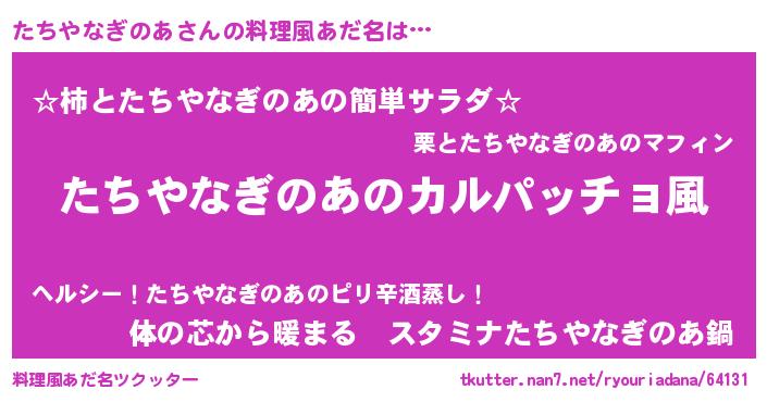 | 女子向けラノベタイトル風あだ名 | 『たちやなぎのあが死なない童話 林檎のたちやなぎのあの診療簿』 |