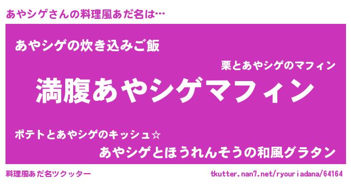 | 意味不明あだ名 | 『永久保存あやシゲ』 |