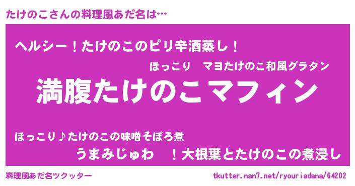| 女子向けラノベタイトル風あだ名 | 『異世界で失敗しない100のたけのこ』 |