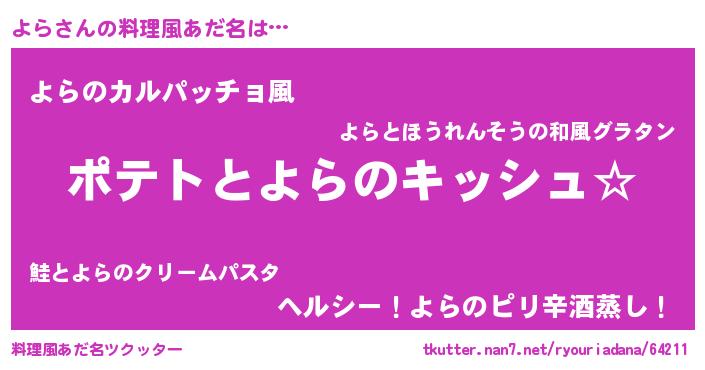 | ヘコむあだ名 | 『よらぷりん』『牛乳』『よらにゅー』 |