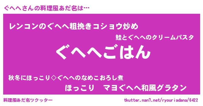 | 意味不明あだ名 | 『なめこ科ぐへへ属』『自称ぐへへ』 |