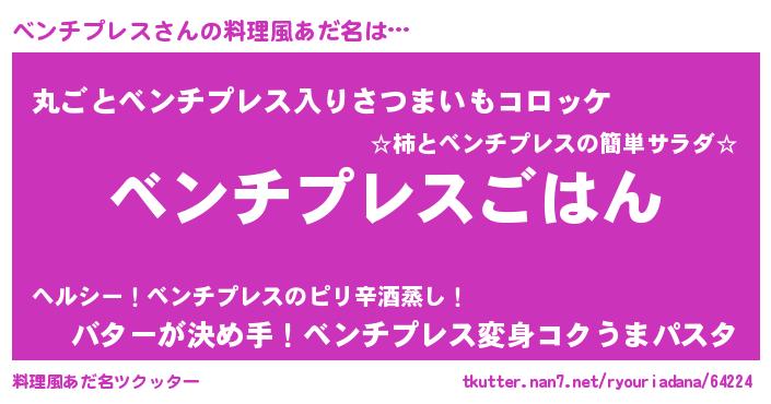 | 男性向けラノベタイトル風あだ名 | 『ベンチプレススレイヤー』 |