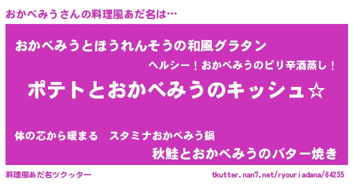| 女子向けラノベタイトル風あだ名 | 『おかべみうの卵を拾いまして』 |