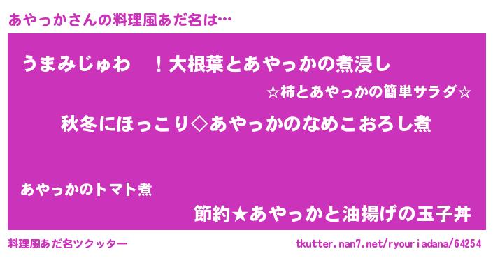 | 男性向けラノベタイトル風あだ名 | 『あやっかに滅ぼされるだけの簡単なお仕事です』 |