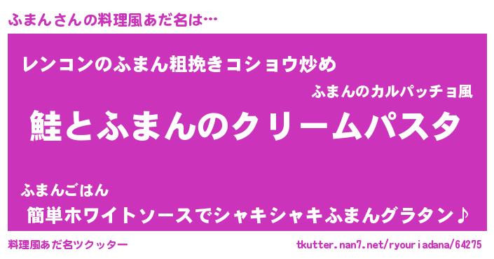 | 女子向けラノベタイトル風あだ名 | 『死神ふまんの再婚』『ふまん様がみてる』 |