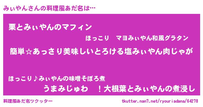 | ヒーロー風カッコイイあだ名 | 『ネオミィヤン』『ウルトラみぃやんマン』 |