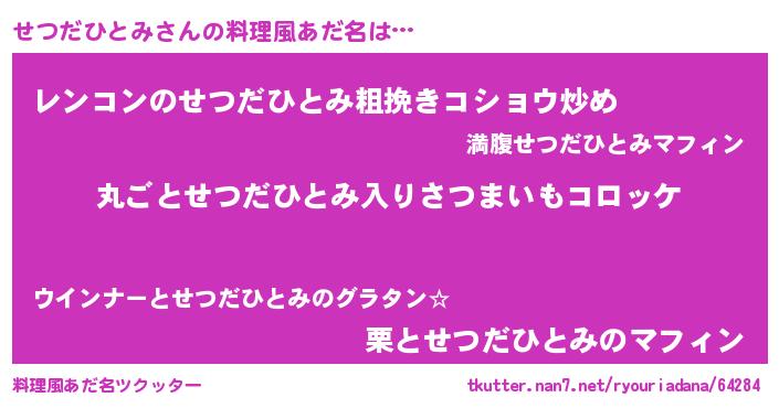 | ヘコむあだ名 | 『せつだひとみ(苦笑)』『豆乳』 |