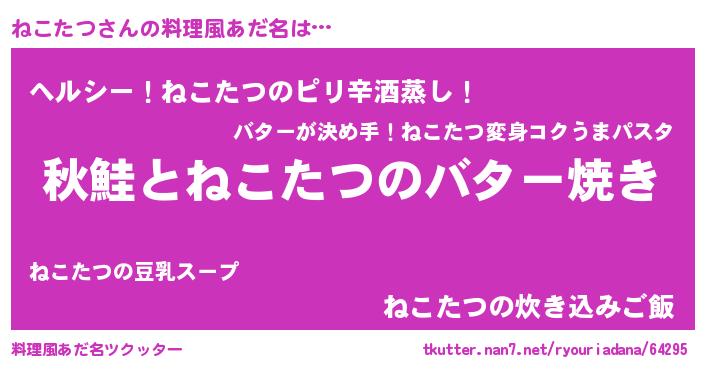 | 女子向けラノベタイトル風あだ名 | 『ねこたつの契約王妃』『ねこたつ恋絵巻』 |