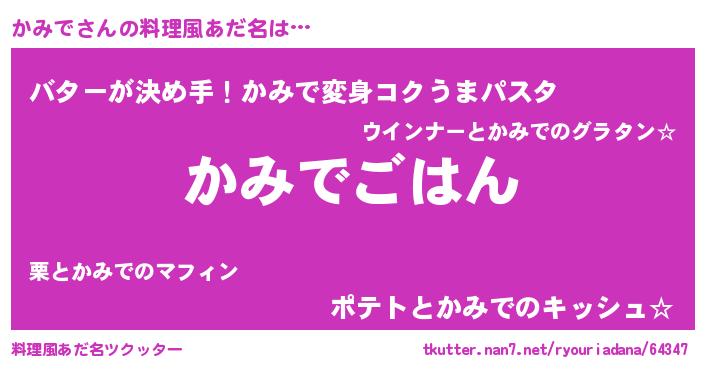 | ヘコむあだ名 | 『かみを』『豆乳』『かみにー』 |