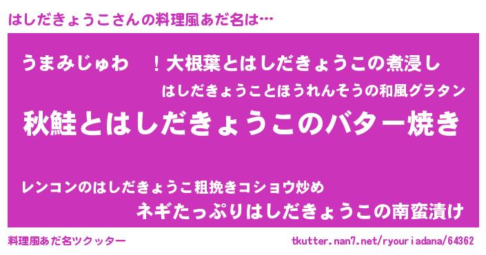 | 意味不明あだ名 | 『永久保存はしだきょうこ』 |