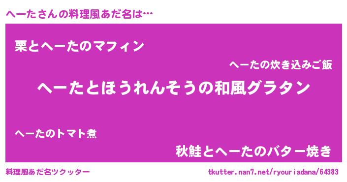 | 意味不明あだ名 | 『なめこ科へーた属』『永久保存へーた』 |