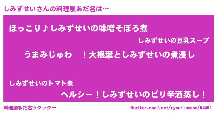 | 胡散臭い通販商品みたいなあだ名 | 『運命の人と巡り会える高級そうな壺…その名も「しみずせい」』 |