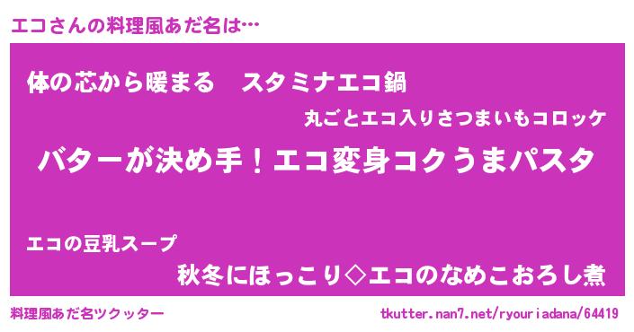 | 女子向けラノベタイトル風あだ名 | 『エコ恋絵巻』『エコの雑貨屋さん』 |
