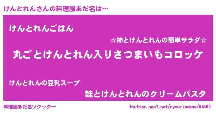 | 意味不明あだ名 | 『住所不定無職けんとれん(14歳)』 |