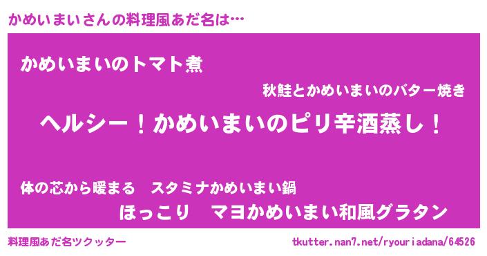| 男性向けラノベタイトル風あだ名 | 『Re:かめいまいから始める異世界生活』 |