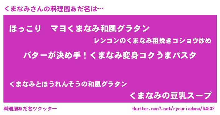 | ヘコむあだ名 | 『くまお』『つくし』『くまなみ(笑)』 |