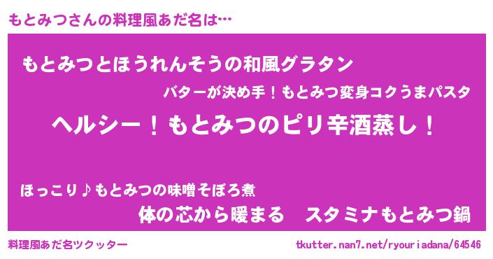 | 意味不明あだ名 | 『自称もとみつ』『ニラ科もとみつ属』 |