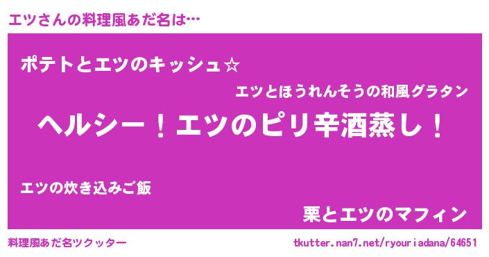 | 女子向けラノベタイトル風あだ名 | 『闇のエツ』『エツの卵を拾いまして』 |