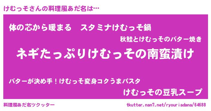 | ヘコむあだ名 | 『けむにー』『牛乳』『けむぷりん』 |