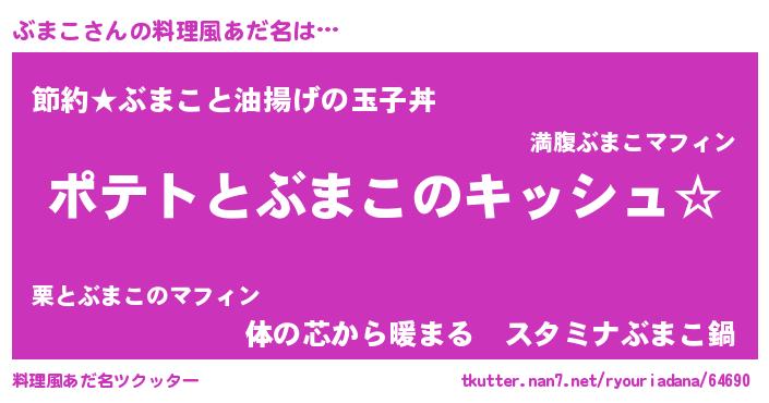| 女子向けラノベタイトル風あだ名 | 『ぶまこの卵を拾いまして』 |