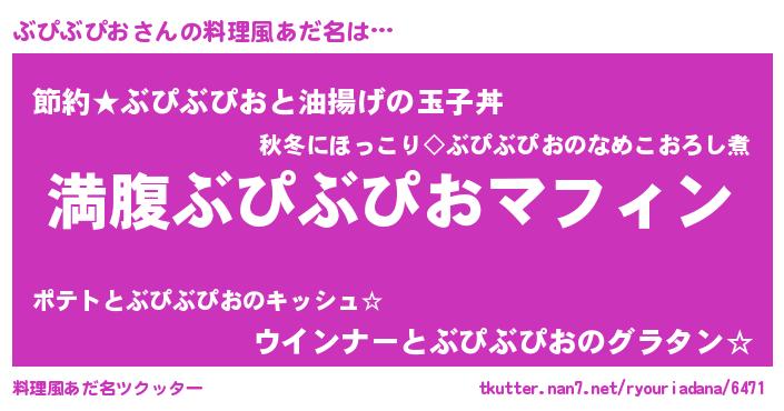 | 女子向けラノベタイトル風あだ名 | 『異世界で失敗しない100のぶぴぶぴお』 |