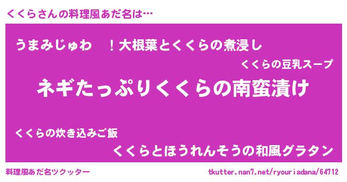 | 意味不明あだ名 | 『ペロリンくくら』『くくらフォーエバー』 |