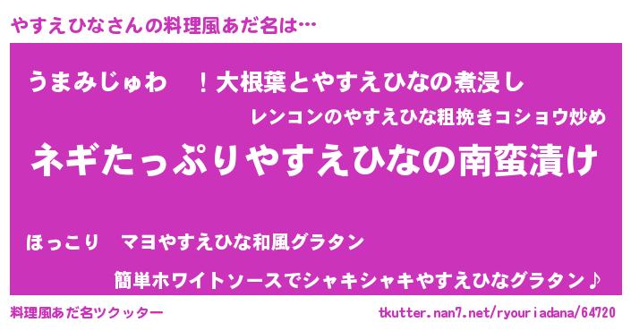 | 意味不明あだ名 | 『ペロリンやすえひな』『自称やすえひな』 |