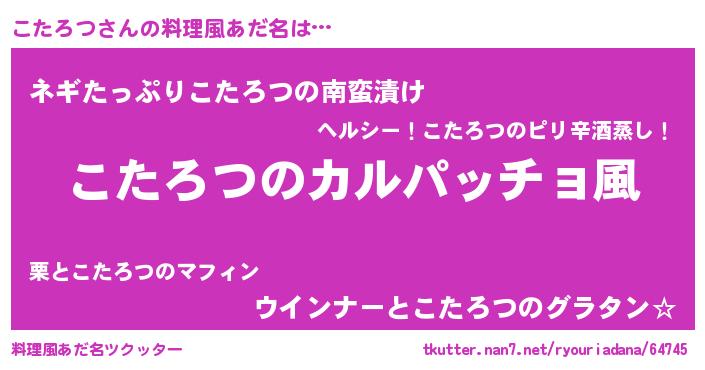 | 意味不明あだ名 | 『住所不定無職こたろつ(59歳)』 |