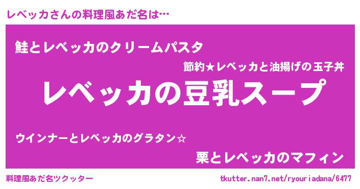 | 欧米人風あだ名 | 『ウサインレベッカ』『ダニエルレベッカ』 |