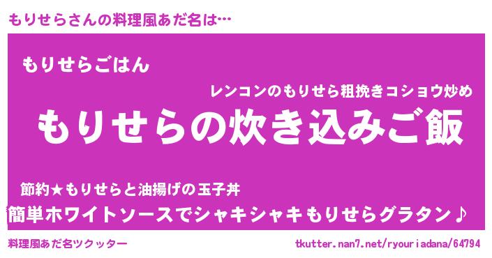 | 意味不明あだ名 | 『ニラ科もりせら属』『自称もりせら』 |