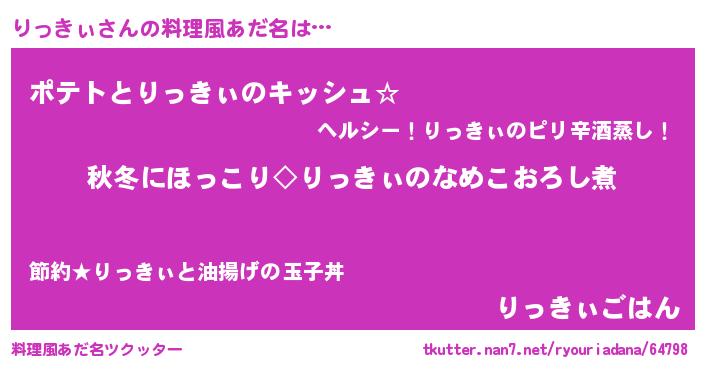 | 男性向けラノベタイトル風あだ名 | 『りっきぃに滅ぼされるだけの簡単なお仕事です』 |
