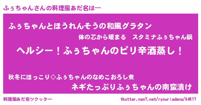 | 意味不明あだ名 | 『自称ふぅちゃん』『ペロリンふぅちゃん』 |