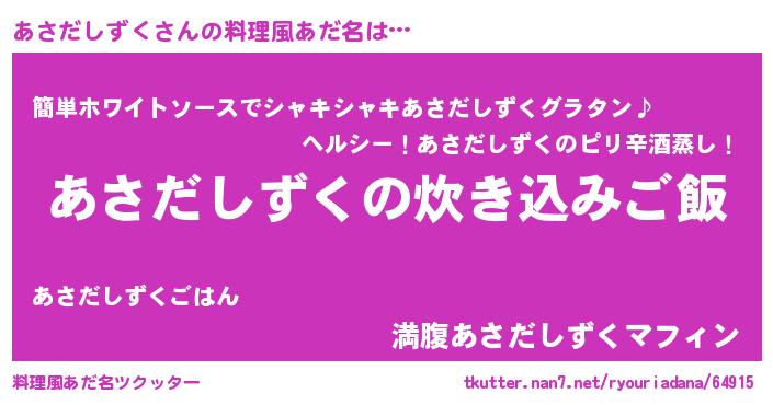 | 意味不明あだ名 | 『とにかく怪しいあさだしずく』 |