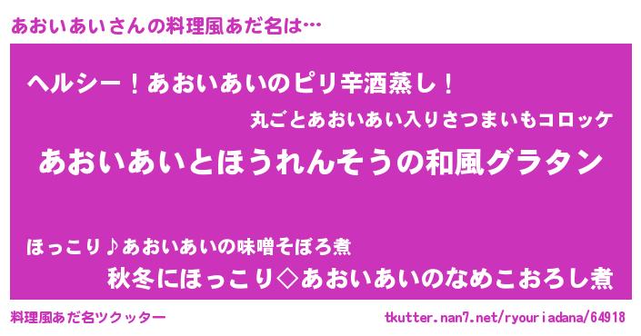 | ヒーロー風カッコイイあだ名 | 『最強戦士アオイアイ』『仮面アオダー』 |