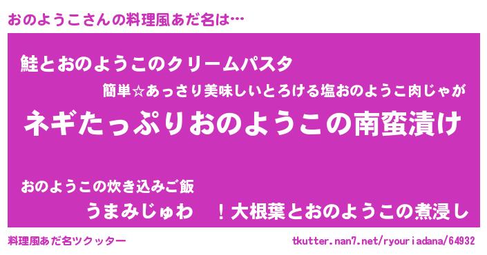 | 男性向けラノベタイトル風あだ名 | 『オノヨウコアートオンライン』 |