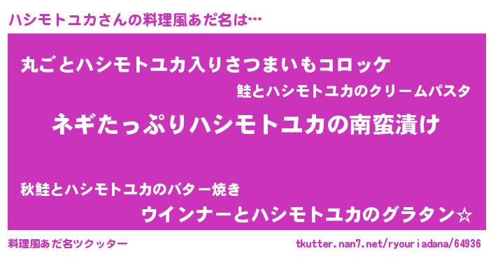 | 男性向けラノベタイトル風あだ名 | 『ハシモトユカアートオンライン』 |