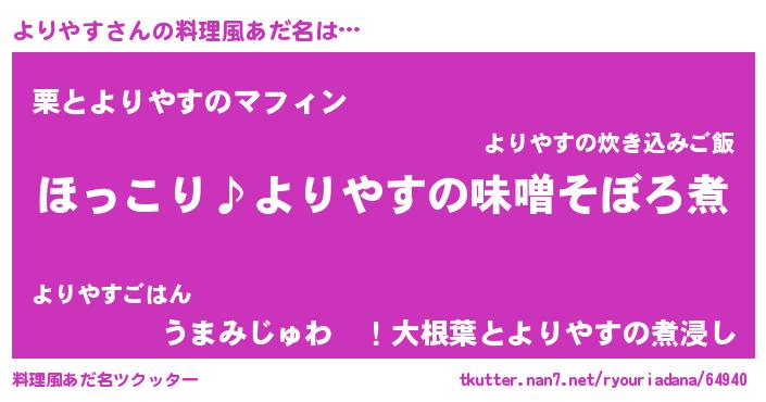 | 意味不明あだ名 | 『ペロリンよりやす』『永久保存よりやす』 |