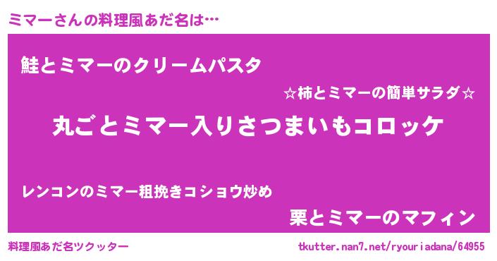 | 女子向けラノベタイトル風あだ名 | 『乙女ゲームの破滅フラグしかない悪役ミマーに転生してしまった…』 |