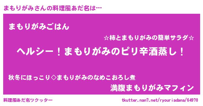 | 男性向けラノベタイトル風あだ名 | 『Re:まもりがみから始める異世界生活』 |