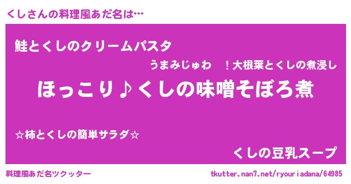 | 男性向けラノベタイトル風あだ名 | 『くしの憂鬱』『ノーゲーム・ノークシ』 |