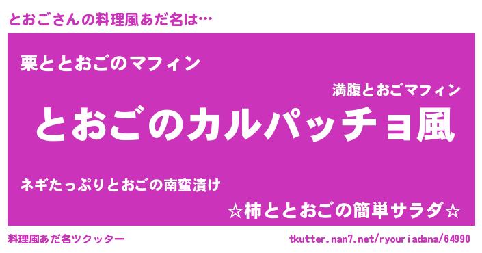 | 男性向けラノベタイトル風あだ名 | 『魔弾の王ととおご』『緋弾のトオゴ』 |