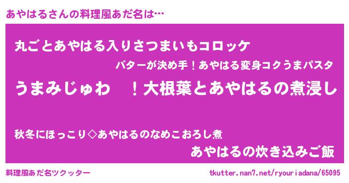 | ヘコむあだ名 | 『酢こんぶ』『あやはる(爆)』 |