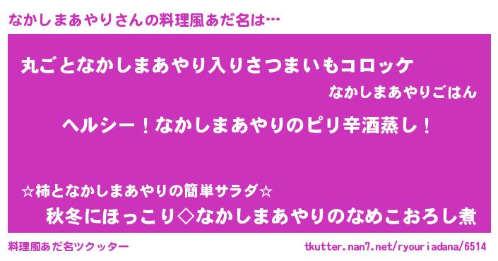 | 男性向けラノベタイトル風あだ名 | 『Re:なかしまあやりから始める異世界生活』 |