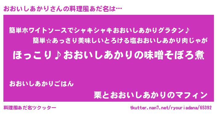 | 男性向けラノベタイトル風あだ名 | 『おおいしあかりの憂鬱』 |