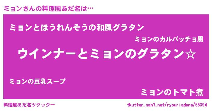 | ヘコむあだ名 | 『豆乳』『ミョっぺ』『ミョにー』 |