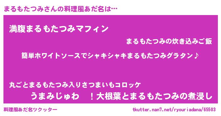 | 男性向けラノベタイトル風あだ名 | 『まるもたつみの嫁は女の子じゃないと思った?』 |